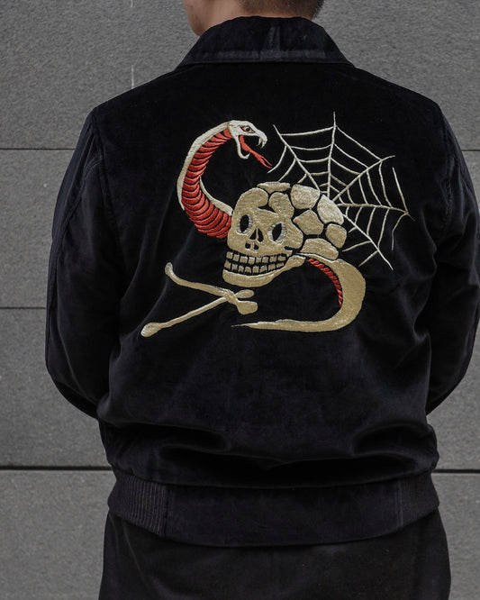 The Groovin High - Lot. 250421 1950s Style Velvet Drizzler Jacket (Skull)